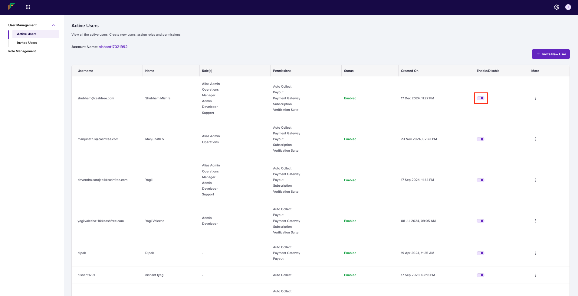 - Enable/Disable - Use this toggle to enable or disable a user.