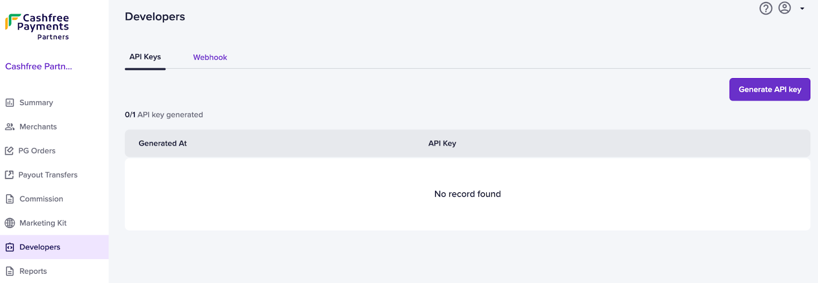 To get started with Partner API requests, you must first generate partner API keys from your Partner Dashboard.- Go to Partner Dashboard > Developers section.