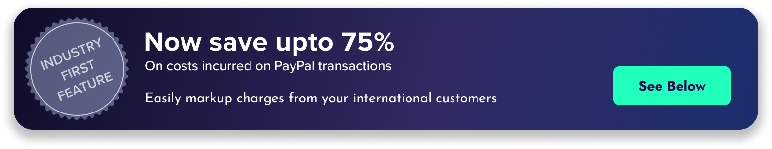 Introducing industry-first Forex Markup feature that allows you to offset your costs by upto 75% on international transactions via Paypal.