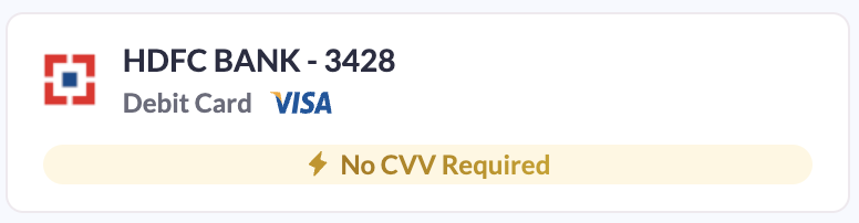 - Faster checkout and reduced friction: Customers do not need to remember or enter CVV details for saved cards.
