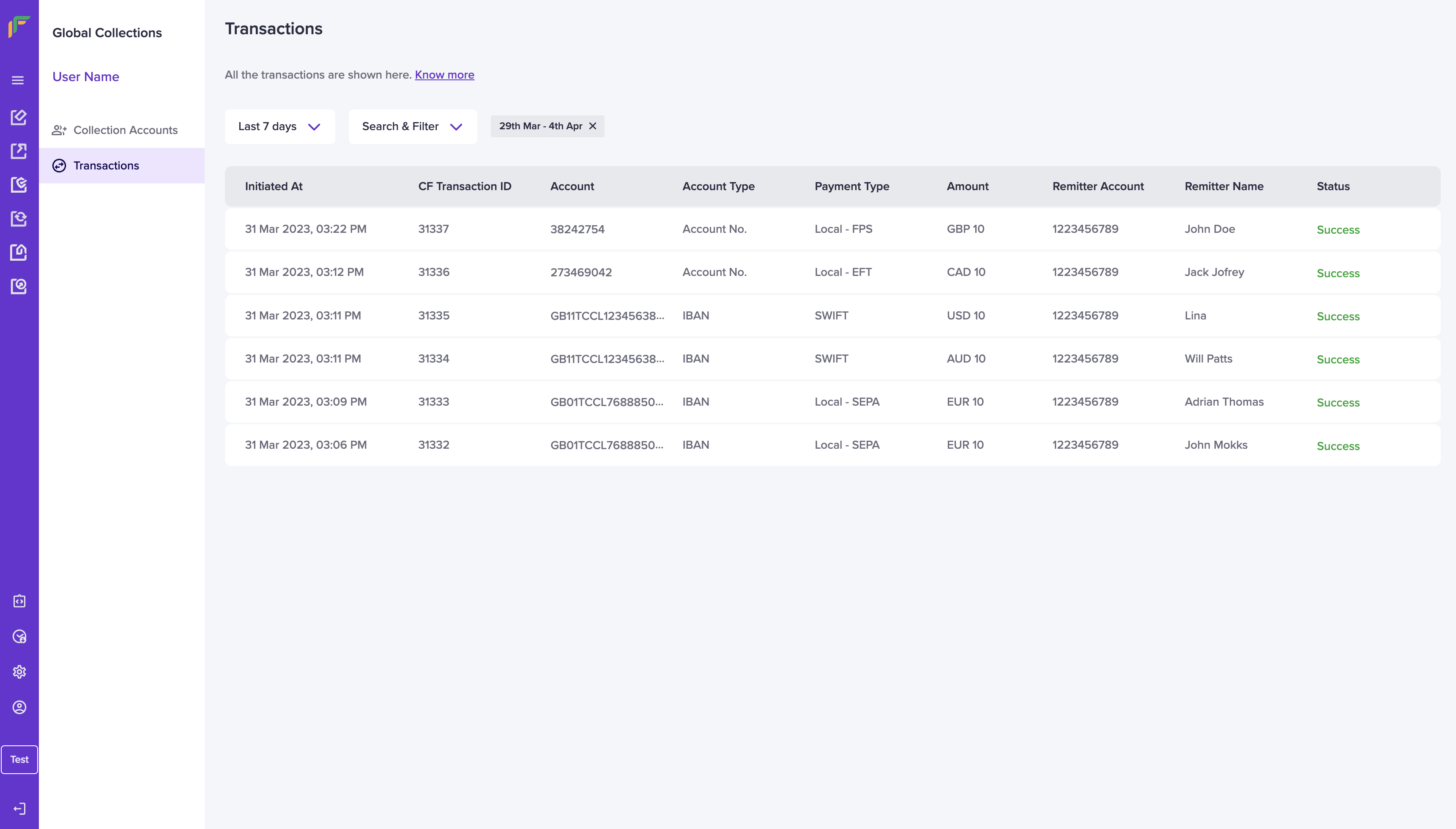 Click on a transaction to view the complete details of the transaction along with the remitter details.