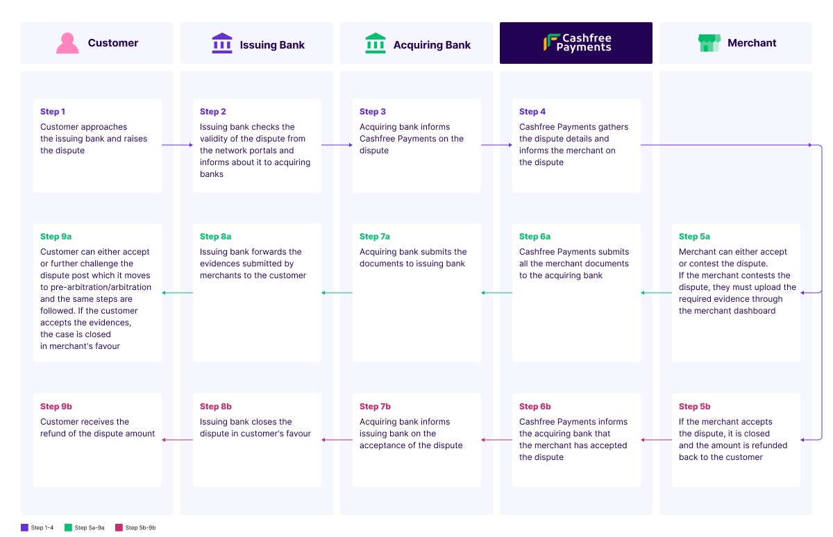 | Dispute | Initial complaints from customers or fraud alerts from banks/authorities | 3 days (1 day for fraud cases) | • Customer complaints: 5-7 business days • Fraud cases: Up to several months • Wallet/Netbanking: ~30 days |