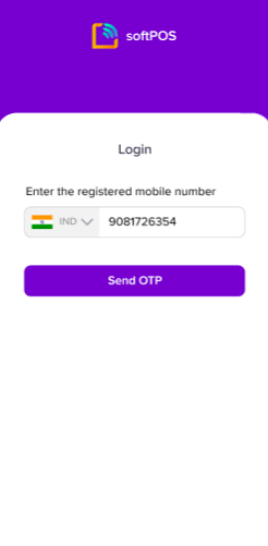 - Launch the application, and enter the phone number that is registered with Cashfree to access softPOS application and click Send OTP.