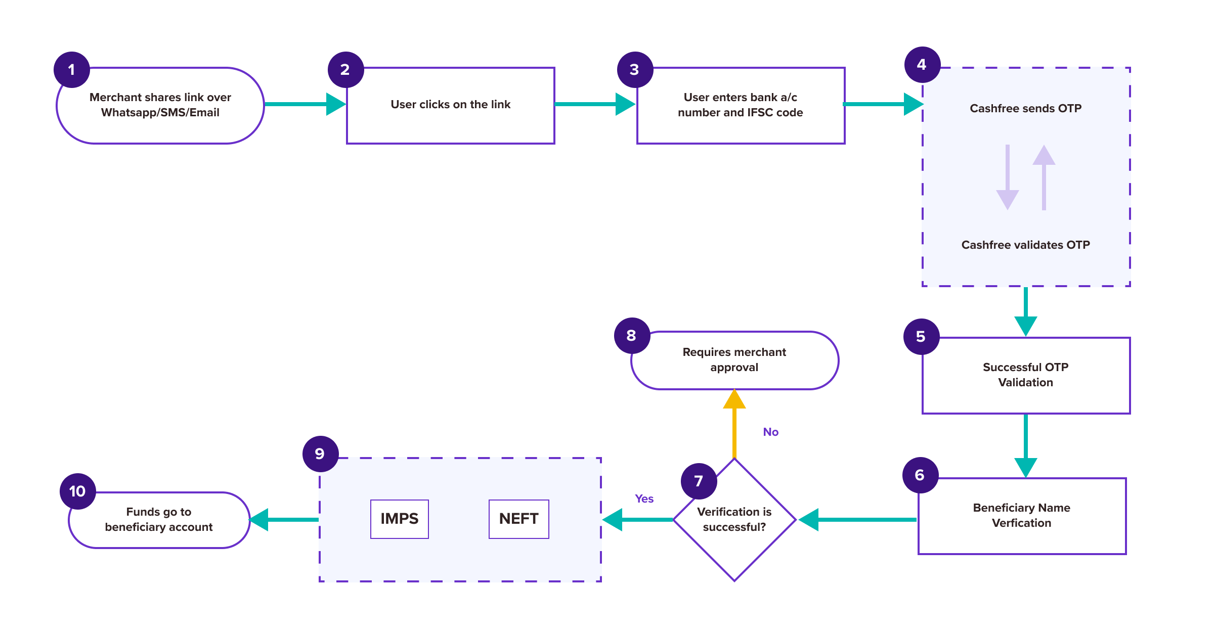 - Create Cashgram with the option Enable Bank Account Verification enabled. Share the link with the intended beneficiary over WhatsApp/SMS/email.