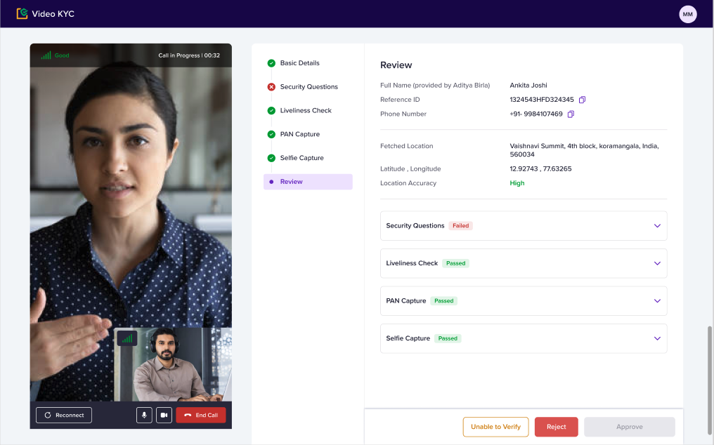 - If any check fails, select Reject, choose the appropriate rejection reason, and confirm.