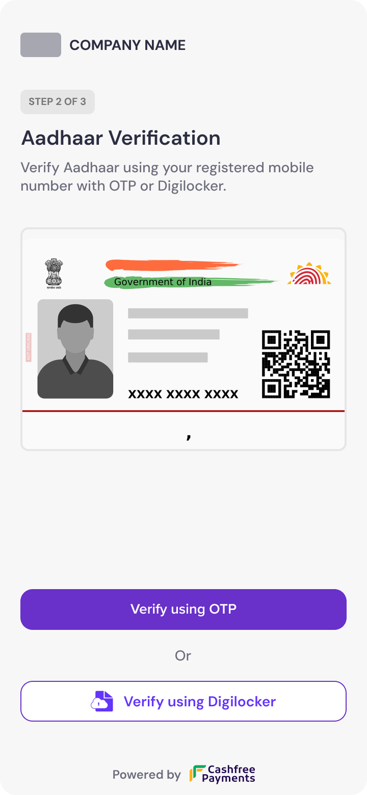 - DigiLocker authentication: Authenticate via DigiLocker to retrieve Aadhaar details.